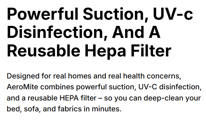 Discover the power of the AeroMite Vacuum. When you need deep cleaning, trust the AeroMite Vacuum cleaner. Why settle for less when the innovative AeroMite Vacuum is available? Investing in the AeroMite Vacuum cleaner means investing in your health.