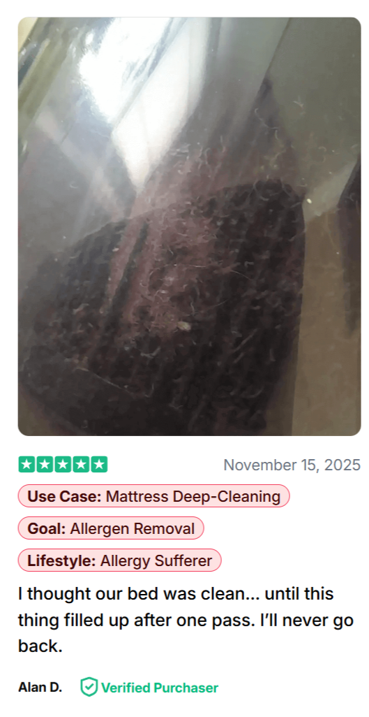 If you’ve never sanitized your mattress before… you’re sleeping on 10+ years of accumulated allergens.
